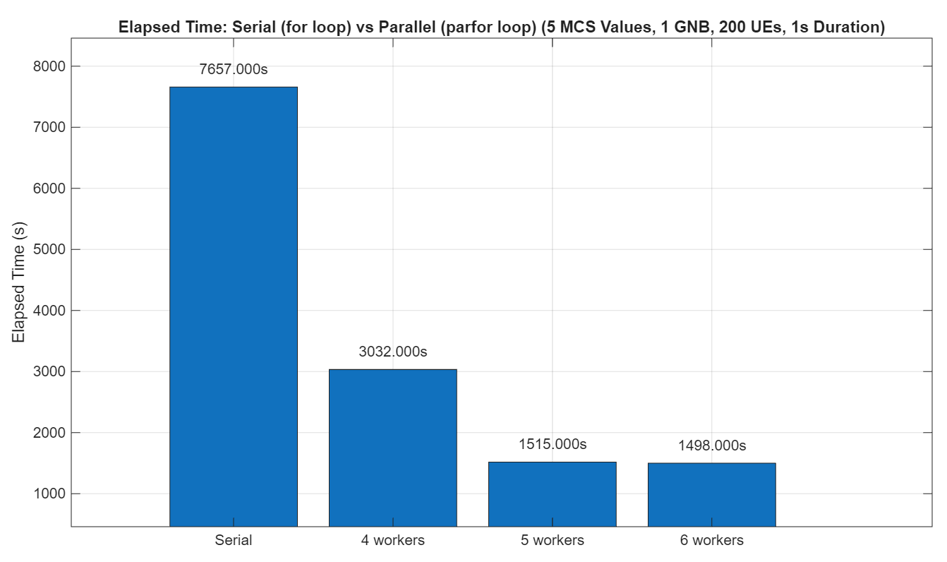 In 5G SLS, you often need to evaluate block error rate (BLER) across a range of conditions, such as different signal-to-interference-plus-noise ratio (SINR) values and modulation and coding scheme (MCS) indices. Running these simulations sequentially can take a long time because each configuration requires a separate run.