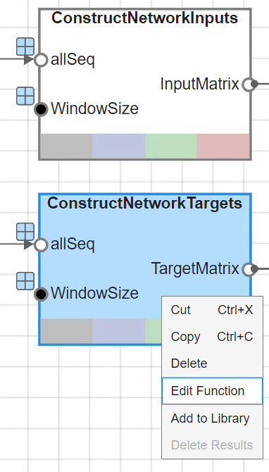 To view the underlying custom functions of these blocks, right-click either block and select Edit Function. The function definition is then shown in the MATLAB editor.