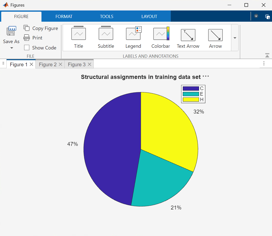 The example uses the Rost-Sander dataset [1] that consists of proteins whose structures span a relatively wide range of domain types, composition, and length. The file RostSanderDataset.mat contains a subset of this data, where the structural assignment of every residue is reported for each protein sequence.