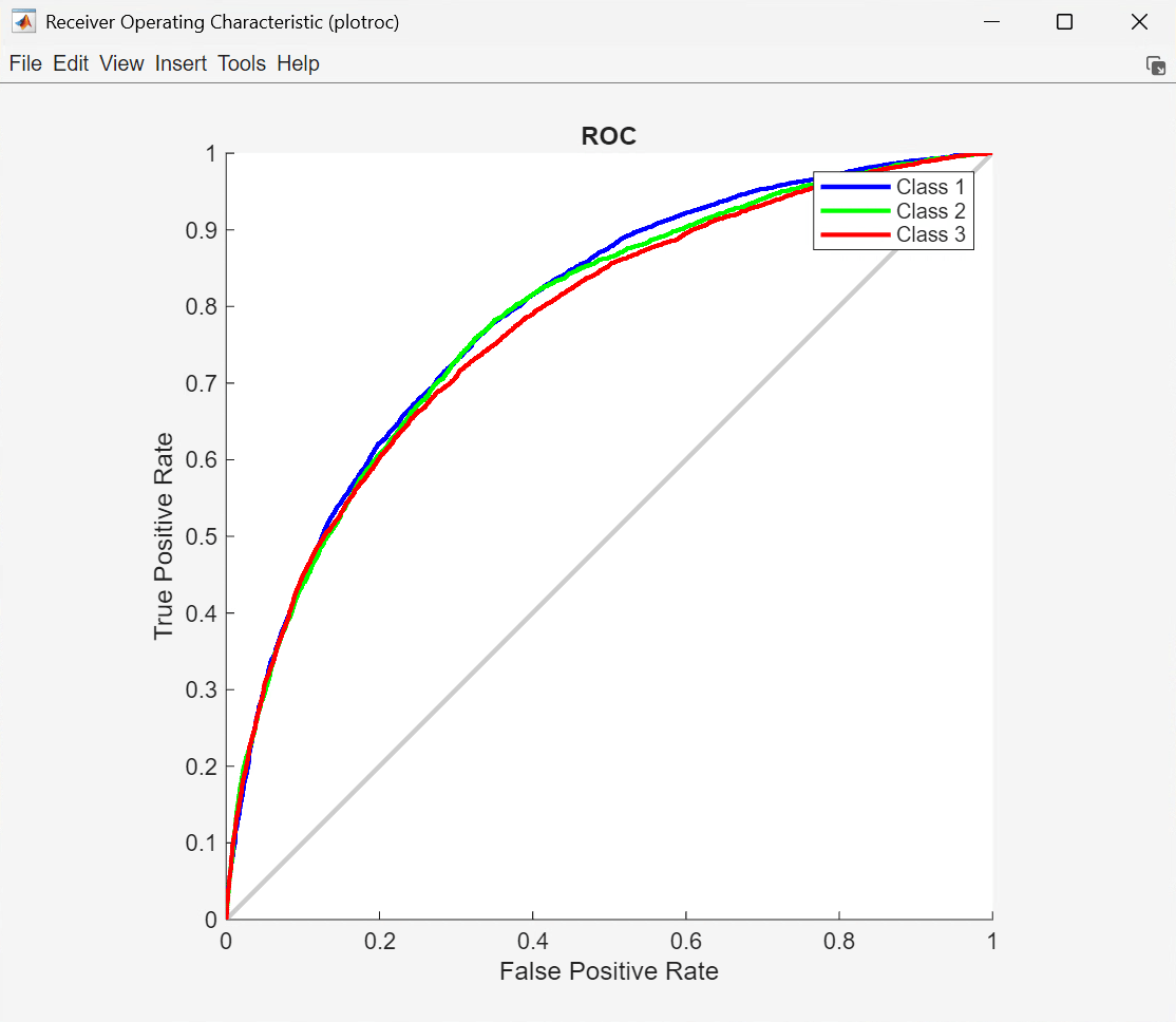 Plot the Receiver Operating Characteristic (ROC) curve, which is a plot of the true positive rate (sensitivity) versus the false positive rate (1 - specificity), using the PlotROCCurve block.