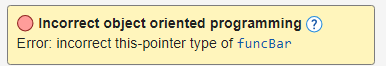 You call a member function using an incorrect this pointer. | Determine why the For instance, if a red Incorrect object oriented programming check appears on a function call