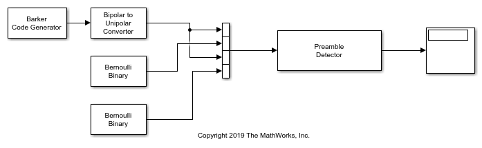 Barker Code Generator 模块生成双极巴克码。短长度和低相关旁瓣使得巴克码在数字通信系统中可用于帧同步。有关详细信息,请参阅巴克码。