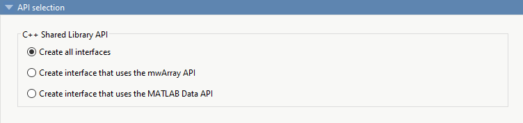 mwArrayAPI 为共享库创建接口。该接口使用 C 风格的函数初始化 MATLAB 运行时,将编译后的 MATLAB 函数加载到 MATLAB Runtime,并管理在 C++ 代码和 MATLAB Runtime 之间传递的数据。该接口仅支持 C++03 功能。有关示例,请参阅生成 C++ mwArray API 共享库并构建 C++ 应用程序。创建使用 MATLAB Data API 的接口 - 使用 MATLAB Data API 为共享库创建接口。它使用具有现代 C++ 语义的通用接口。该接口支持 C++11 功能。有关详细信息,请参阅生成 C++ MATLAB Data API 共享库并构建 C++ 应用程序。