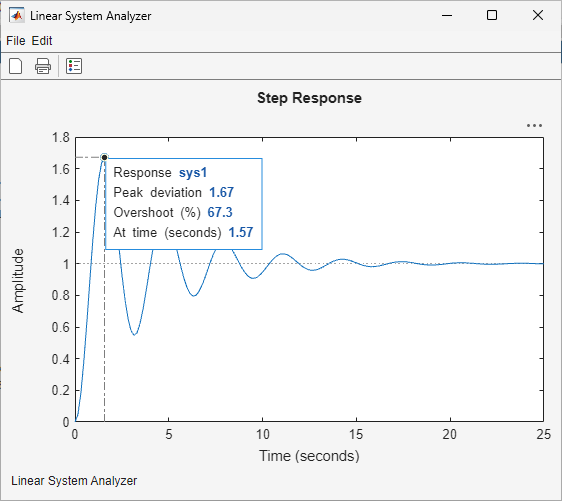 • Inspect key response characteristics, such as rise time, maximum overshoot, and stability margins.