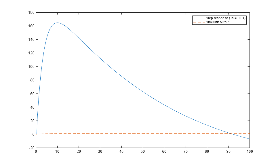 legend("Step response (Ts = 0.01)","Simulink output")