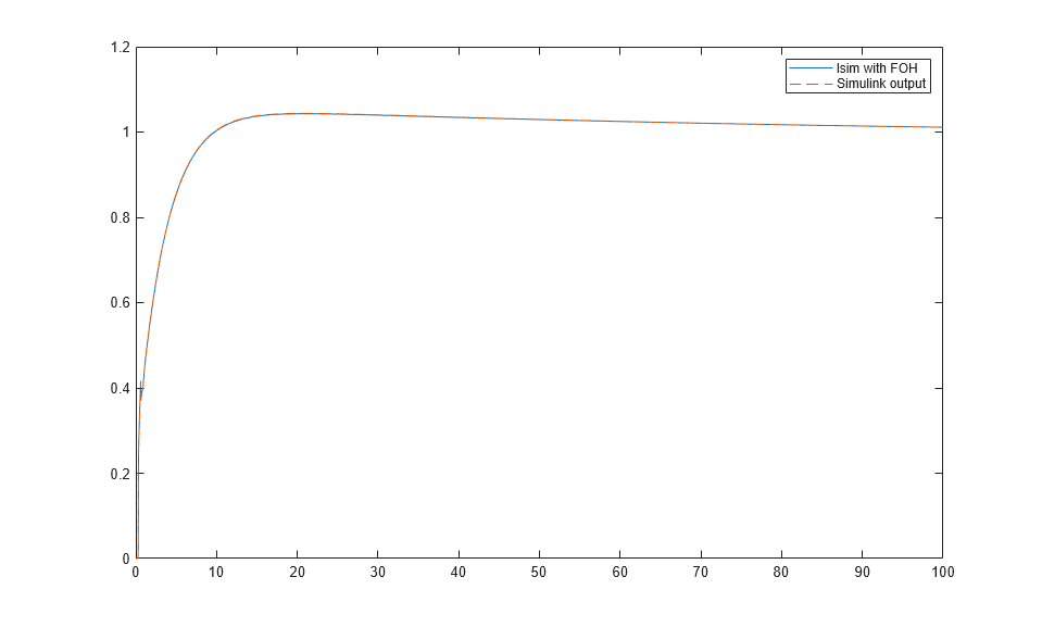 legend("lsim with FOH","Simulink output")