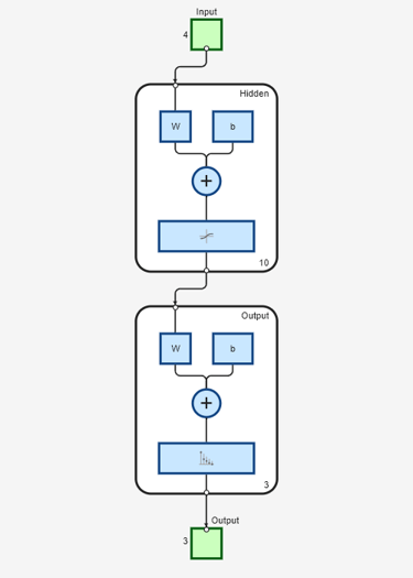view(net) 打开一个窗口,以图形方式显示您的浅层神经网络(由 net 指定)。