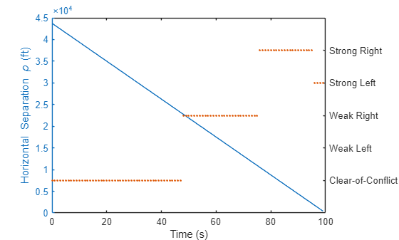 ylabel("Horizontal Separation \rho (ft)",Interpreter="tex")