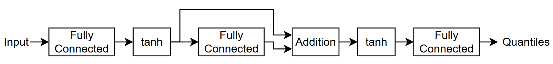 This example trains a quantile neural network that has a skip connection and custom weight initializers.