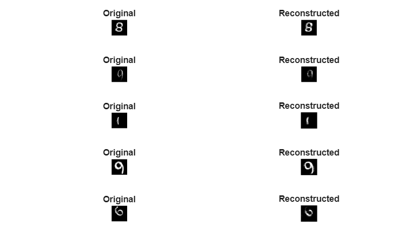Train the neural network by using the trainnet function. For image reconstruction, use binary cross-entropy loss. By default, the trainnet function uses a GPU if one is available. Using a GPU requires a Parallel Computing Toolbox™ license and a supported GPU device. For information on supported devices, see GPU Computing Requirements (Parallel Computing Toolbox). Otherwise, the function uses the CPU. To specify the execution environment, use the ExecutionEnvironment training option.