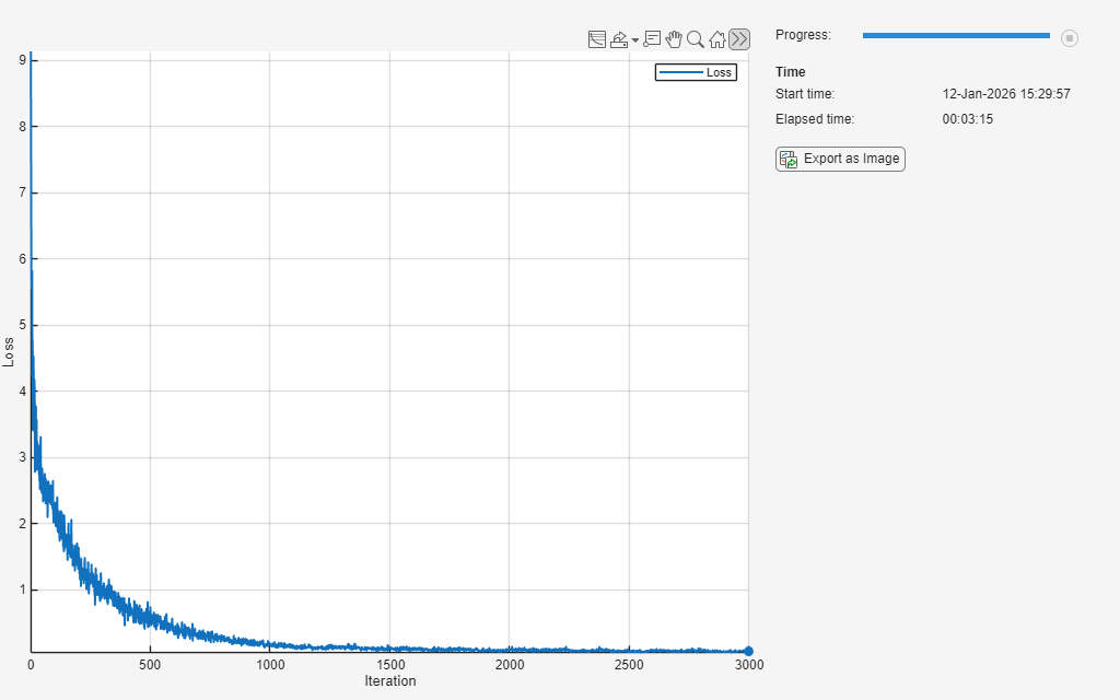 adamupdatefunction.Record the training loss in the training progress monitor.