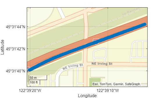 plot(gpsData,Name=Value) specifies options using one or more name-value arguments. For example, MarkerSize=5 plots the GPS waypoints with a marker size of 5.