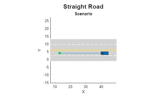 configure(scenarioDescriptorPlotObj,Title="Straight Road")Play the entire scenario simulation, instead of displaying only the first frame of the scenario.