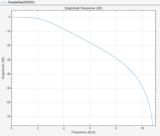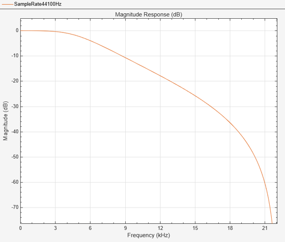 hpIIRFilter = designfilt('highpassiir', ... 'FilterOrder',20,'StopbandFrequency',3000, ... 'PassbandFrequency',8000,'SampleRate',44100, ... 'Norm',120,'SystemObject',true)