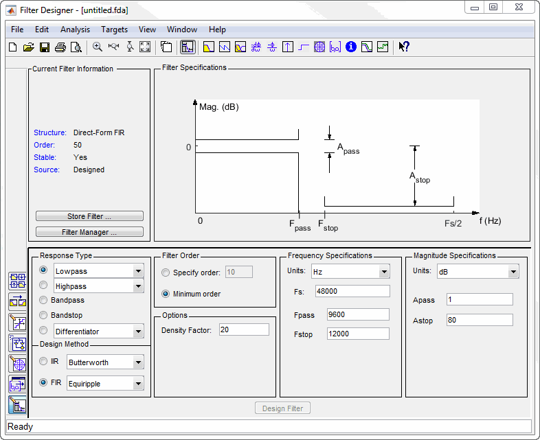 filterDesigner 打开滤波器设计工具。使用此工具可以: