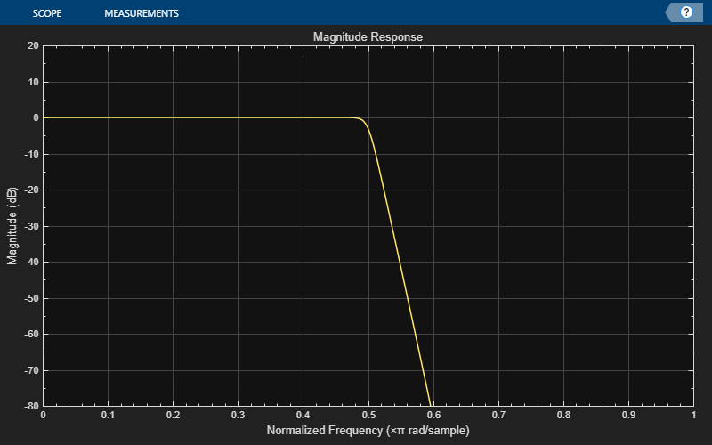 filterViz = dsp.DynamicFilterVisualizer(NormalizedFrequency=true,YLimits=[-80 20]);