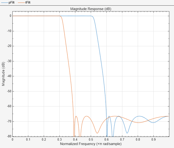 returns the target lowpass IIR filter as a filter object. (since R2026a)tfiltObj,allpassNum,allpassDen] =