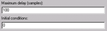 The settings in this section specify fixed initial conditions. For a fixed initial condition, the block initializes each of D samples in memory to the value entered in the Initial conditions parameter. A fixed initial condition in sample-based mode can be specified in one of the following ways: