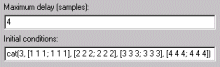 An M-by-N-by-P-by-D array can be entered for the Initial Conditions parameter when the input is an M-by-N-by-P array. The (M,N,P,T)th sample of the Initial Conditions matrix provides the initial condition value for the (M,N,P)th channel of the input matrix at delay = Dt+1 samples.