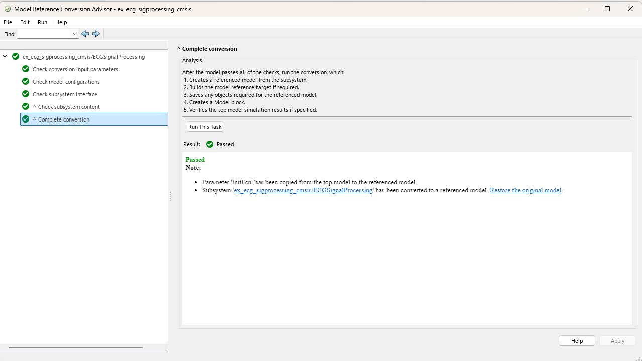 1. Open the ex_ecg_sigprocessing_cmsis.slx model.