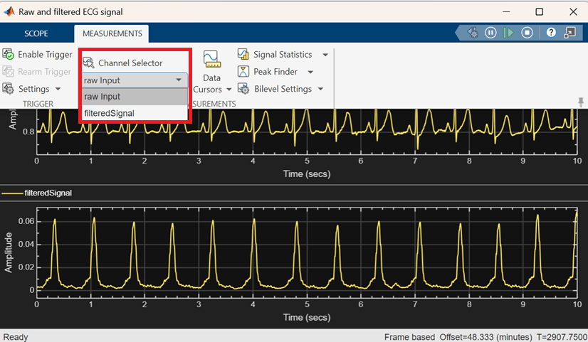 4. Use the ECG Signal Selector to switch among ECG signals with different mean heart rates.