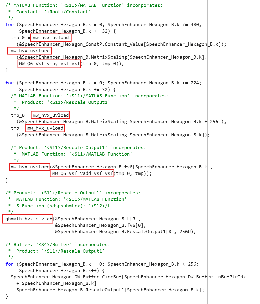 targetInfo = get_param("SpeechEnhancer_Hexagon","CoderTargetData"); targetInfo.Device.EnableHVX = 1; targetInfo.Device.ProcessorVersion = 'V75'; set_param("SpeechEnhancer_Hexagon","CoderTargetData",targetInfo); set_param("SpeechEnhancer_Hexagon","InstructionSetExtensions", "HVX"); set_param("SpeechEnhancer_Hexagon","OptimizeReductions","On"); set_param("SpeechEnhancer_Hexagon","InstructionSetFMA","On"); set_param("SpeechEnhancer_Hexagon","CodeReplacementLibrary","Qualcomm Hexagon HVX, Qualcomm Hexagon QHL");