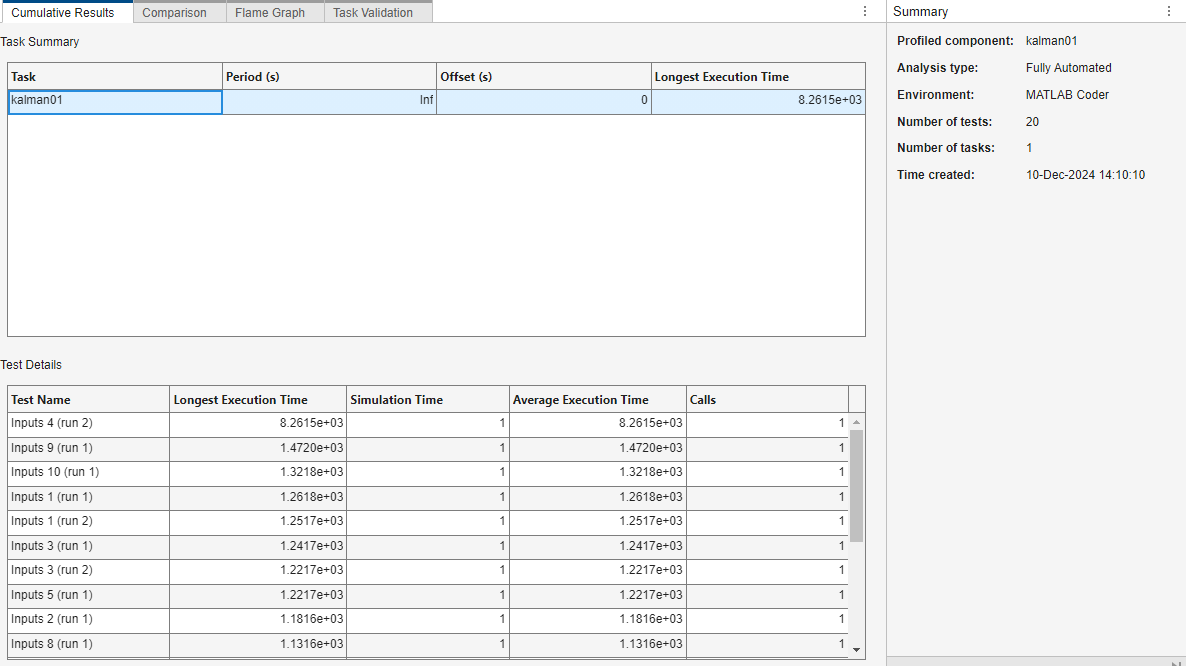 For more information about analyzing execution-time results, see Automate Identification of Hotspots in Generated Code.