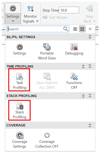 coverageSettings = get_param(model, 'CodeCoverageSettings'); coverageSettings.CoverageTool='None'; set_param(model, 'CodeCoverageSettings',coverageSettings); open_system(model) set_param(model, 'CodeExecutionProfiling','off'); open_system('PILCounter') set_param('PILCounter', 'CodeExecutionProfiling','off'); currentFolder=pwd; save_system('PILCounter', fullfile(currentFolder,'PILCounter.slx'))