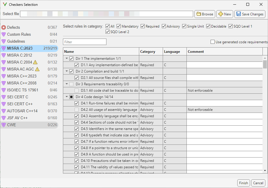 3. Select the MISRA C:2023 guidelines objective and apply the changes.