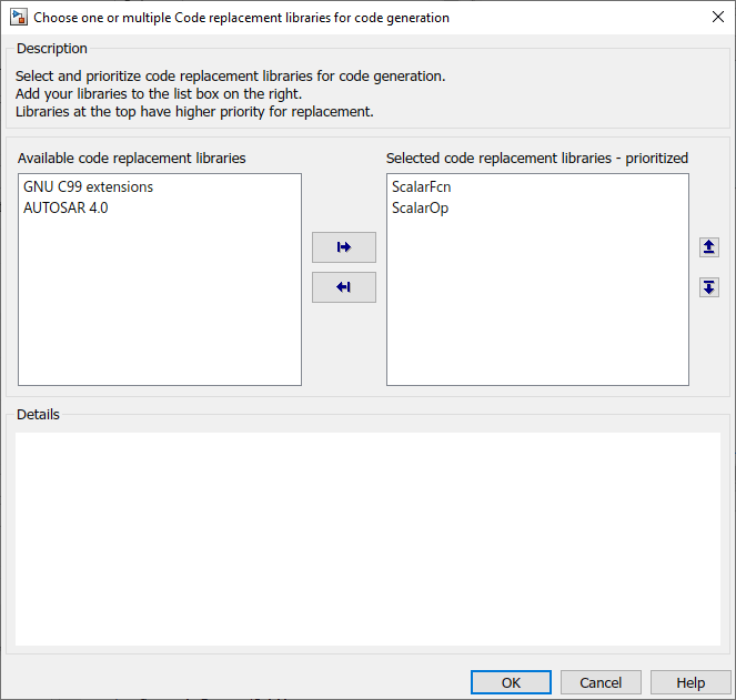 当您使用不同的参量类型(例如矩阵和标量)时,优先级顺序将被忽略。矩阵代码替换库的优先级高于标量代码替换库,无论代码替换库指定的顺序如何。