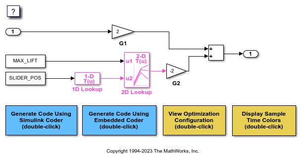 3.在模型中,点击标有 G1 的 Gain 模块。在模型数据编辑器中,使用值列将增益参数的值设置为 myStruct.G1。