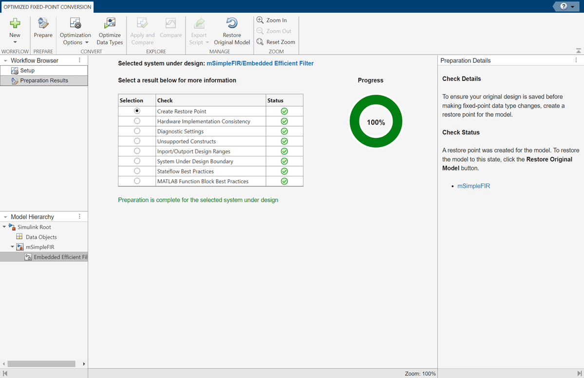 此工作流将在优化过程完成时自动更改模型上的数据类型。如果您在开始优化之前完成准备步骤,您可以自动将模型还原到其原始状态。