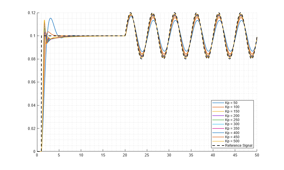 This compiles the model and prepares it for simulation. You can now run quick iterative simulations without recompiling the model. For example, you can perform a parameter sweep to study the effect of increasing the proportional coefficient Kp for the PID controller.