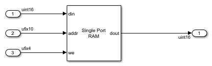The Single Port RAM System block models a single-port RAM that supports