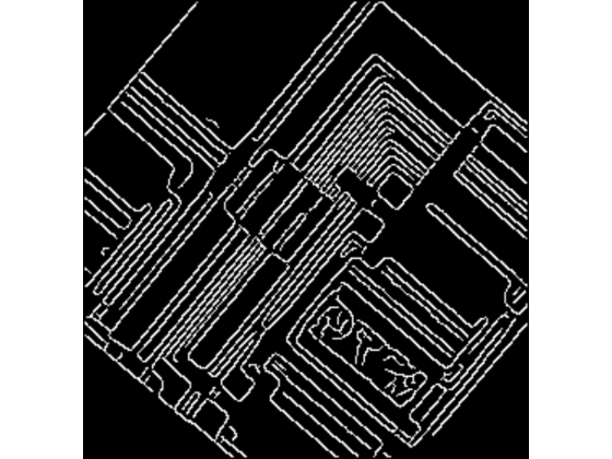 Irot = imrotate(I,50,"crop"); BW = edge(Irot,"canny"); imageshow(BW)