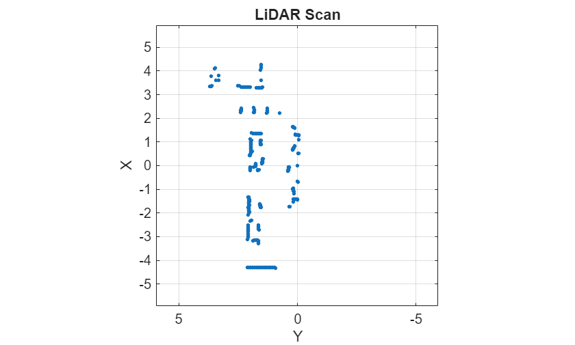 Lidar scan data read from the SICK 2-D lidar sensor, returned as a lidarScan object or vector of lidarScan objects.