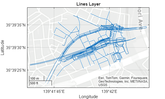 linesLayer = readgeotable(filename,Layer="lines");在地图上显示这些线条。