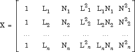 Regression matrix. Consists of terms included in the model.