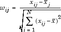 Let W denote the matrix of wij values. Then the correlation matrix for the columns of X (excluding column 1) is Corr(X), defined as