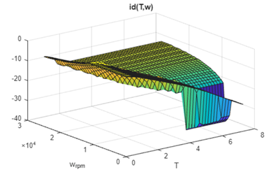 figure;surf(PMSMLUT.trefVec,PMSMLUT.wrpmVec,PMSMLUT.idTable');xlabel('T');ylabel('w_{rpm}');title('id(T,w)');