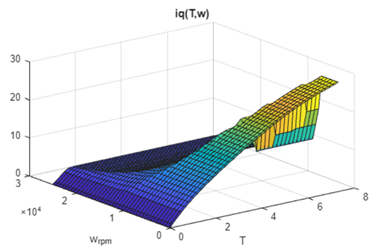 figure;surf(PMSMLUT.trefVec,PMSMLUT.wrpmVec,PMSMLUT.iqTable');xlabel('T');ylabel('w_{rpm}');title('iq(T,w)');