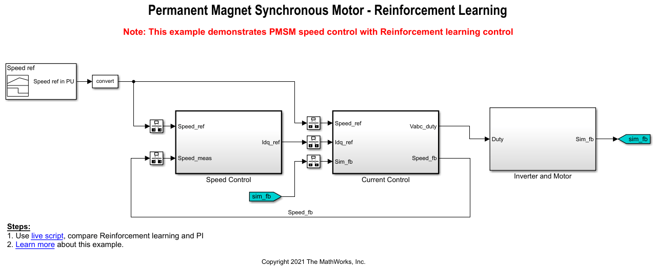 openExample('mcb/FieldOrientedControlOfPMSMUsingReinforcementLearningExample','supportingFile','mcb_pmsm_foc_sim_RL.slx');