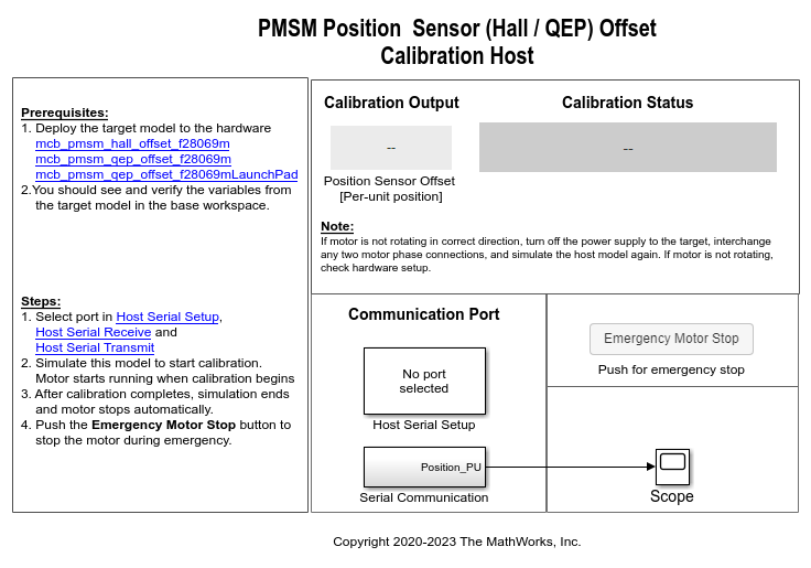 此示例不支持仿真。该示例自动将计算出的偏移值保存在基础工作区中可用的 PositionOffset 变量中。