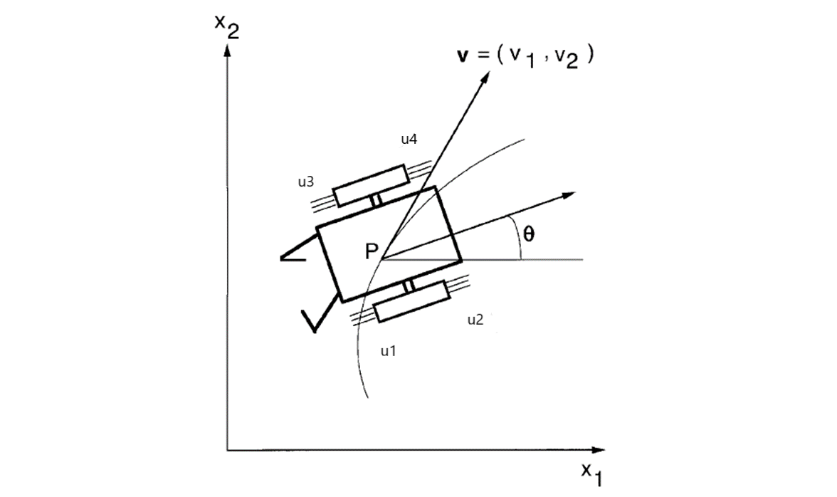 For more information on the sliding robot, see [1]. The model in the paper uses two thrusters with force ranging from -1 to 1. However, this example assumes that there are four physical thrusts in the robot, each with force ranging from 0 to 1, to achieve the same control freedom.