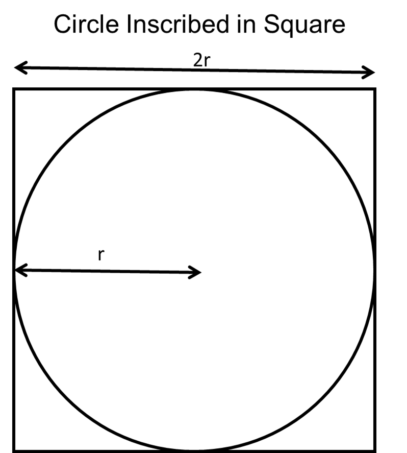 给定一个半径为 的圆内切于一个边长为 的正方形,该圆的面积与正方形的面积之比为 。该图很能说明问题。