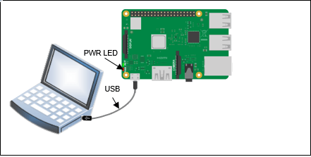 Connect the micro end of the USB cable to the Raspberry Pi and the regular end of the USB cable to the computer. Wait until the PWR LED on the hardware starts blinking.