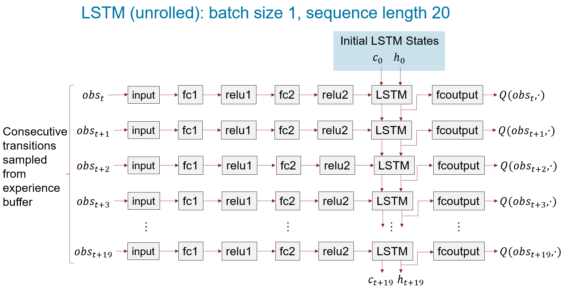 The figure below shows an LSTM network unrolled for batch size of 1 and sequence length of 20.