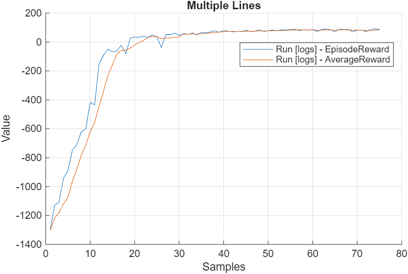 To save time while running this example, load a pretrained agent by setting doTraining to false. To train the agent yourself, set doTraining to true.