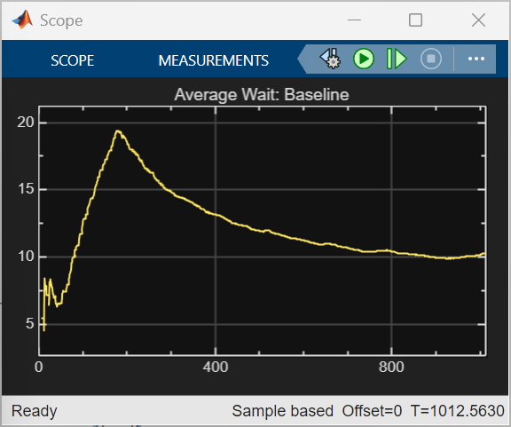 Baseline strategy: To evaluate performance, the RL agent is compared against a baseline heuristic strategy. The baseline aims to minimize estimated future workload by selecting the queue with the smallest product between the number of people waiting in line and the cumulative product time. It is implemented as a variant subsystem that remains disabled during training and is enabled during the simulation phase for comparison. You enable this strategy using the runBaseline workspace variable.
