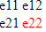 在结果表中,第二行第二个条目中的文本 e22 为红色。
